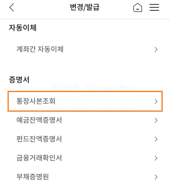 통장사본조회를 선택한다.